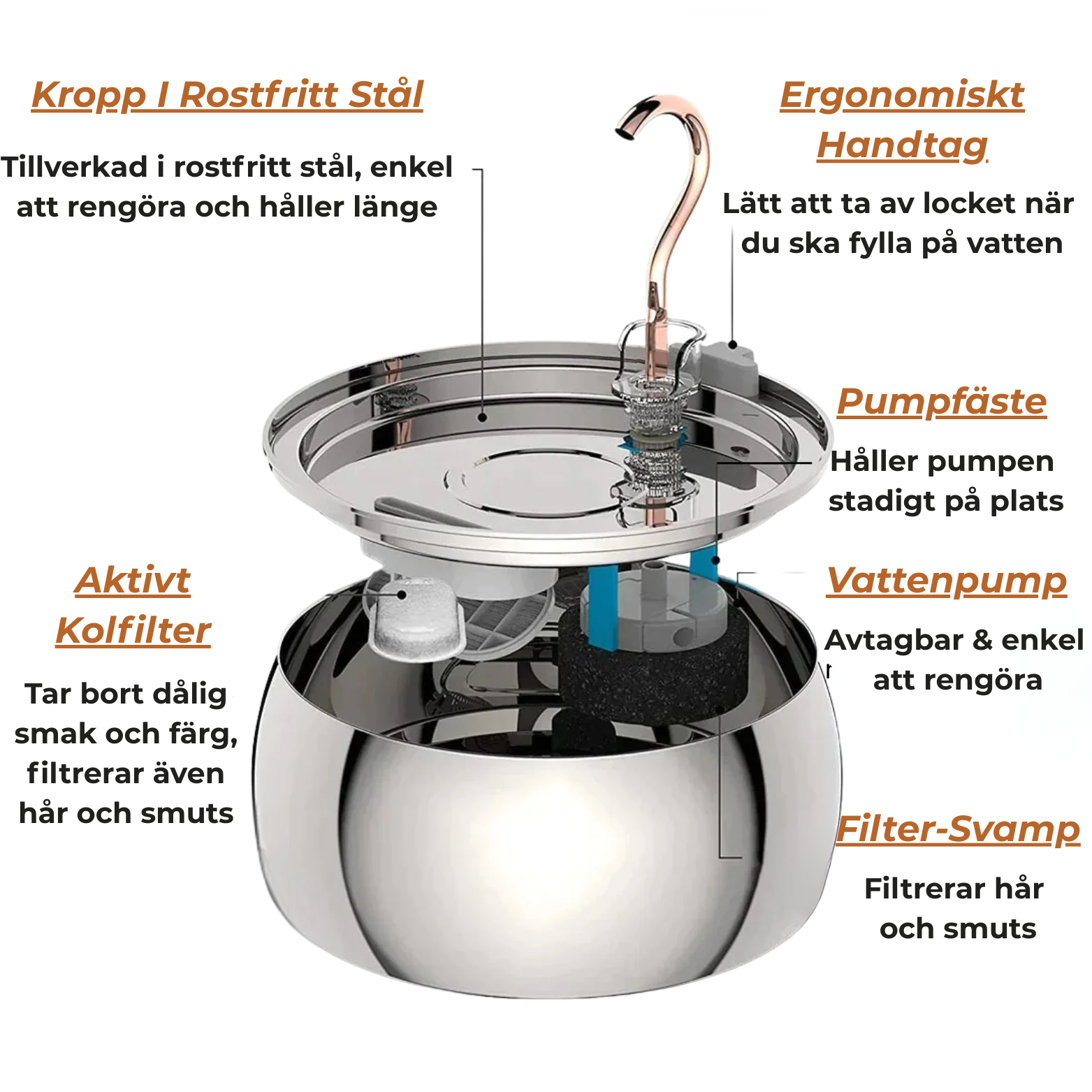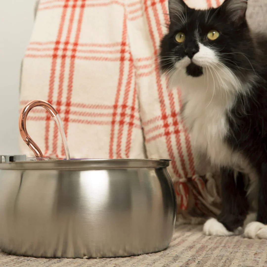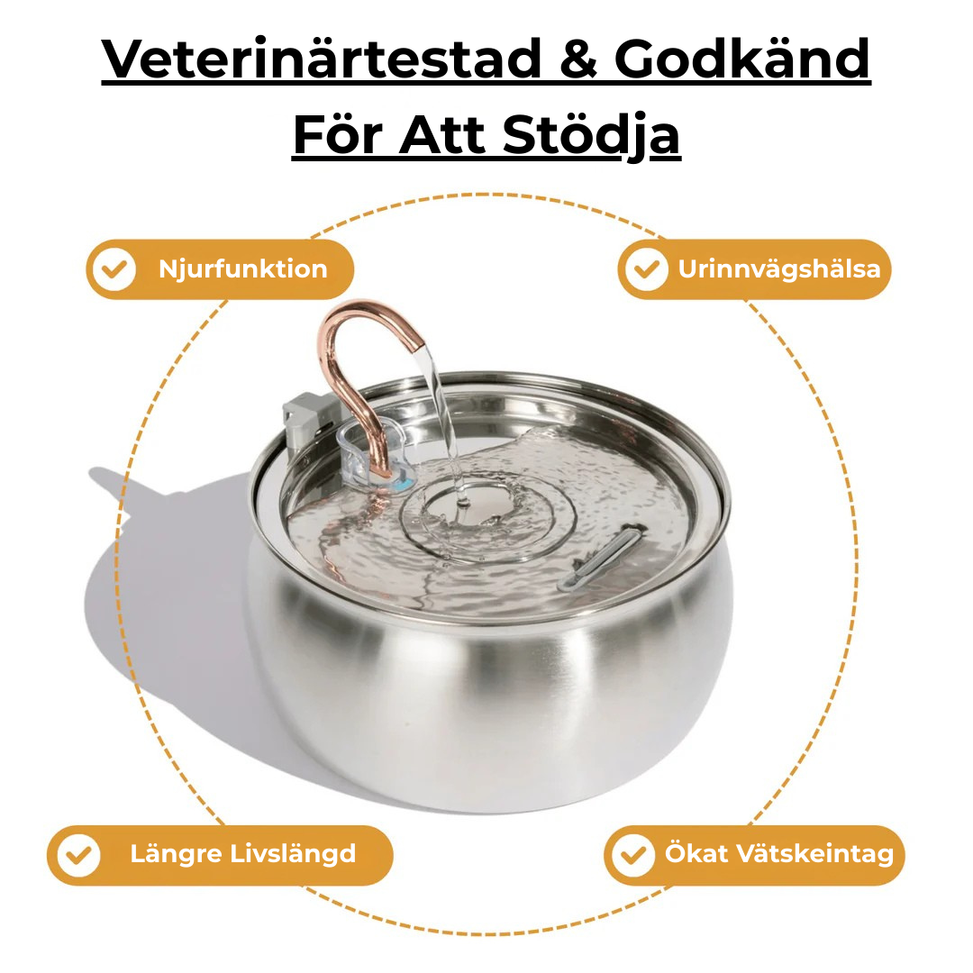 Aquacat ger en kontinuerlig ström av friskt vatten som lockar din katt att dricka mer varje dag.