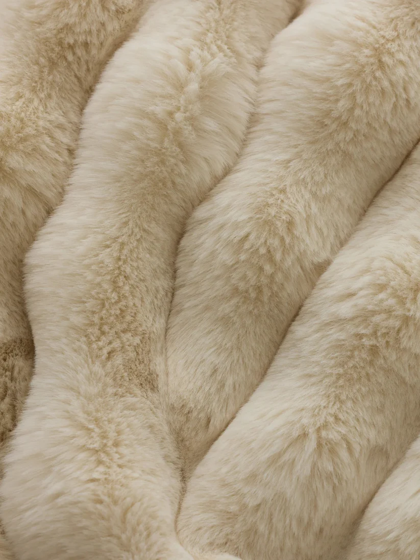 Den tjocka, fluffiga luggen skapar extra volym och värme utan att bli tung, vilket gör den perfekt för mysiga stunder i soffan eller sängen.