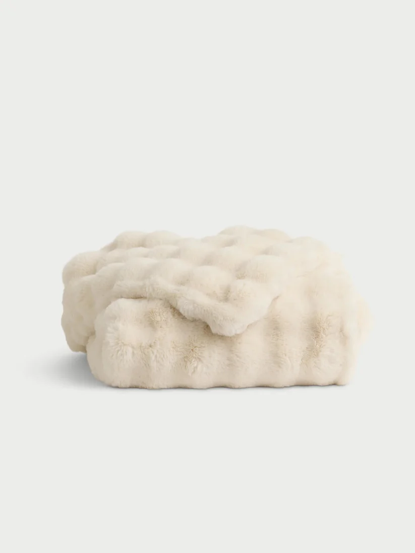 Drömfilten har en unik bubbelstruktur som vävs av ultramjuka polyesterfiber som ger en plyschig, len känsla mot huden.