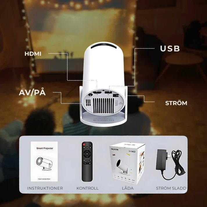 Bara att koppla in, ansluta till WiFi och börja använda den direkt. Projektorn ställer in bild och skärpa automatiskt på några sekunder.