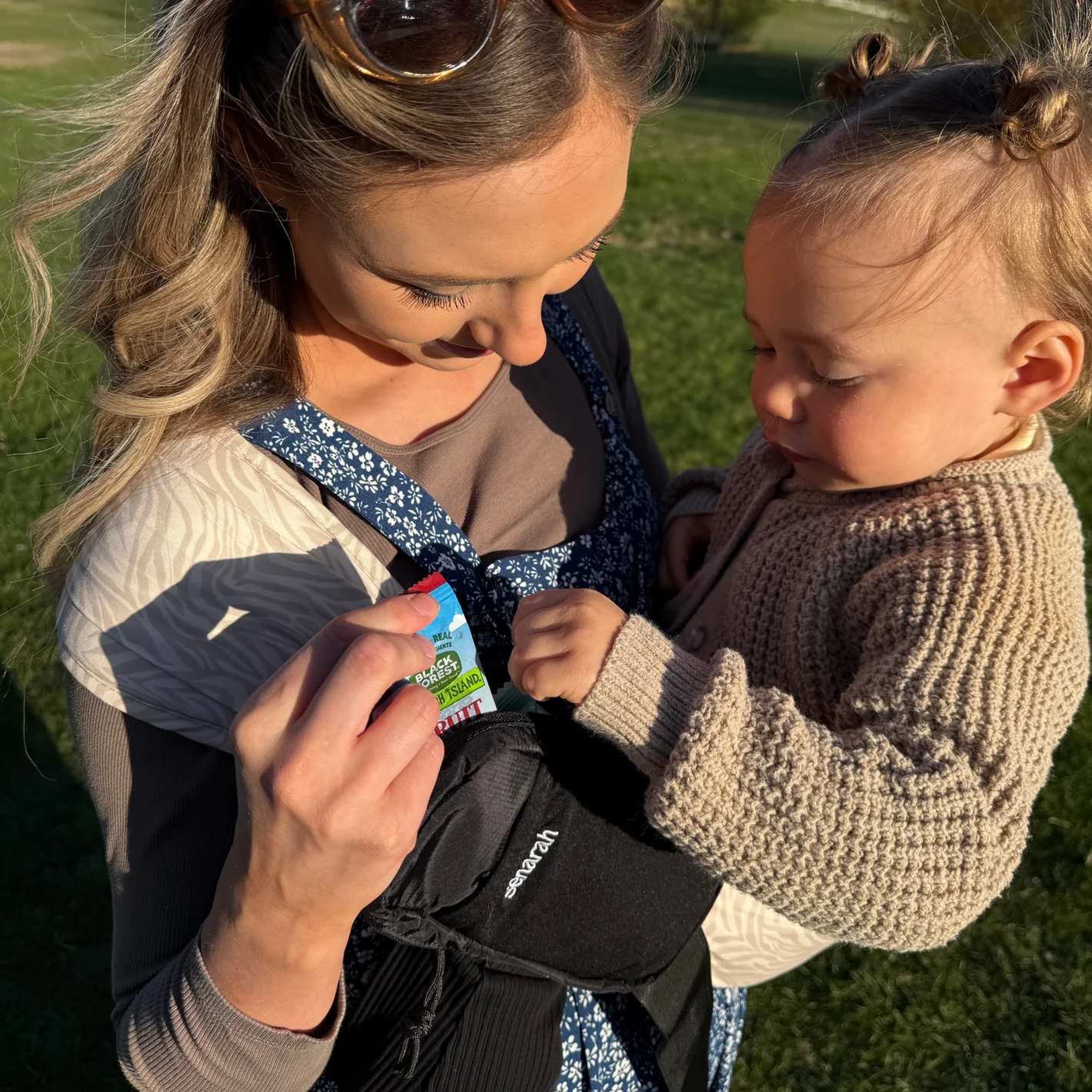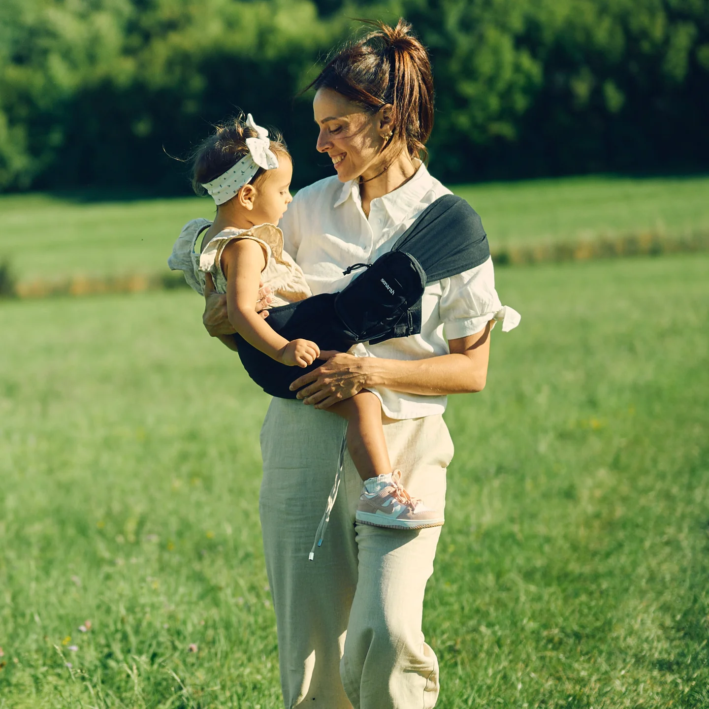 När ditt barn vill upp och ner hela tiden har du alltid slyngan redo, och när den inte används försvinner den enkelt i väskan.